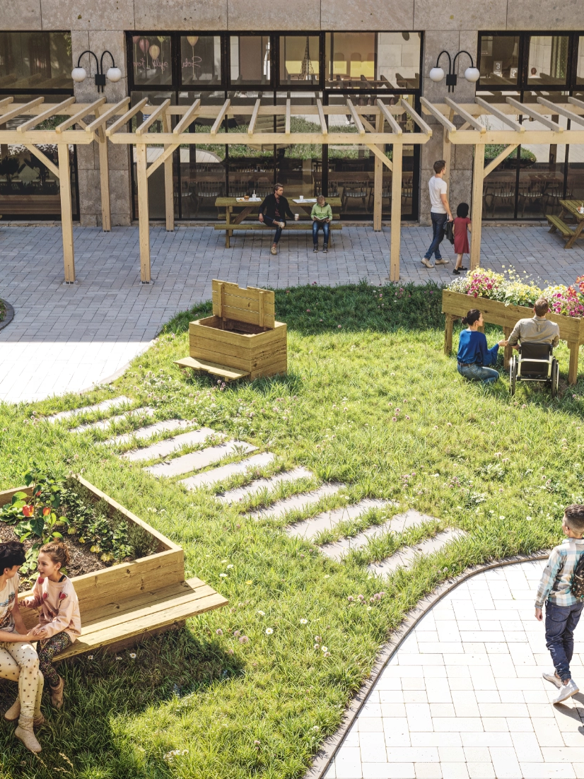 - 5 x Ambiances 3D : Des scènes réalistes et immersives pour montrer l’intégration des meubles Skol’R dans des environnements variés (cours d’école, université, parc…).